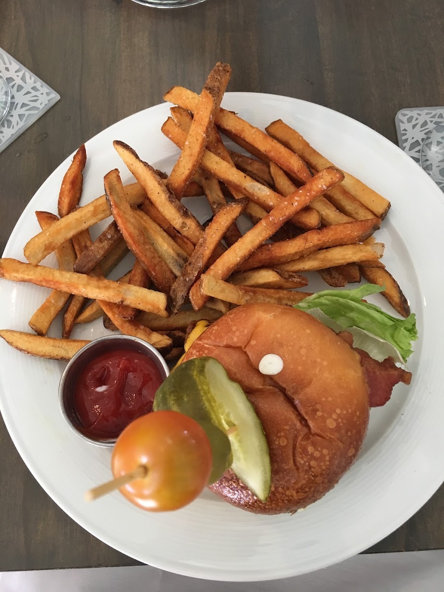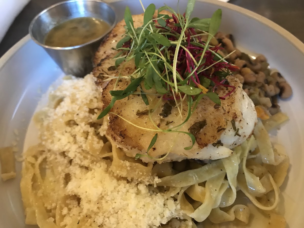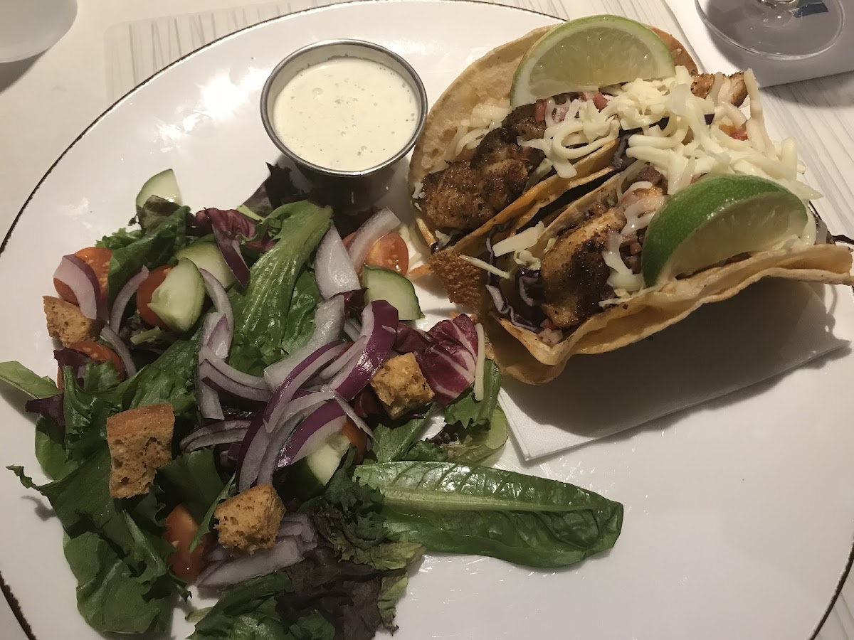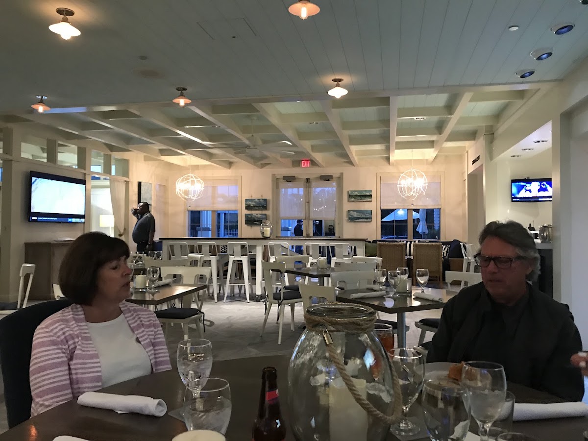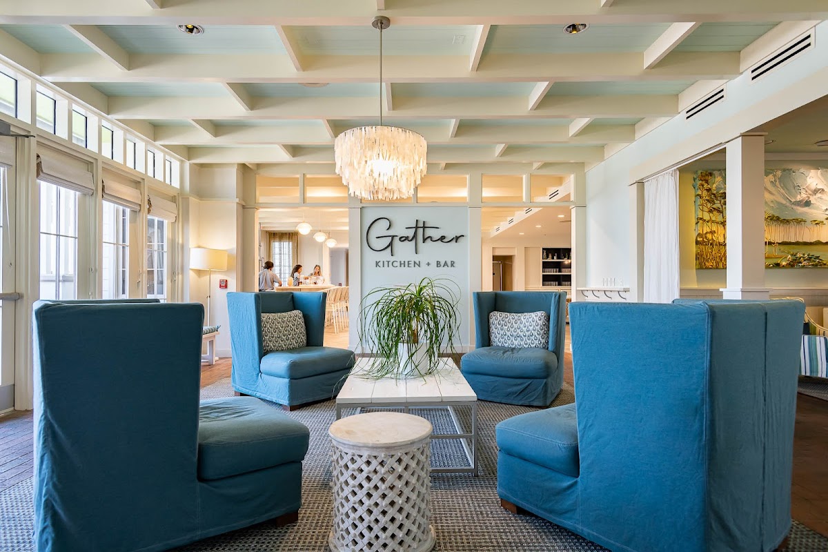 Gather is located in watercolor inn and has a wonderful atmosphere inside. Dress casual or dress up you’ll fit in! We went two separate times and had great waiters and service. The food was good, but a little on the salty/vinegar side. The blackened mahi fish sandwhich was good and the truffle fries with aioli were our absolute favorite thing there. The Asian inspired bowl was good, but quite salty. The strawberry shortcake dessert left something to be desired; the shortcake was two large dry biscuits (?) with very minimal whip cream and a few strawberries. For the price it was not worth it and better desserts around town. We also got a to-go snack around 8:30 pm one night which consisted of the garlic parm chicken wings and a ceasar wrap with fries- unfortunately these were not good. Perhaps because they were to-go? The wings were dried to a crisp we couldn’t even pull the skin off. The ceasar wrap lacked fresh greens, and the fries were.. just fries. Overall we’d dine in again in the future when we’re back but might try different menu items.